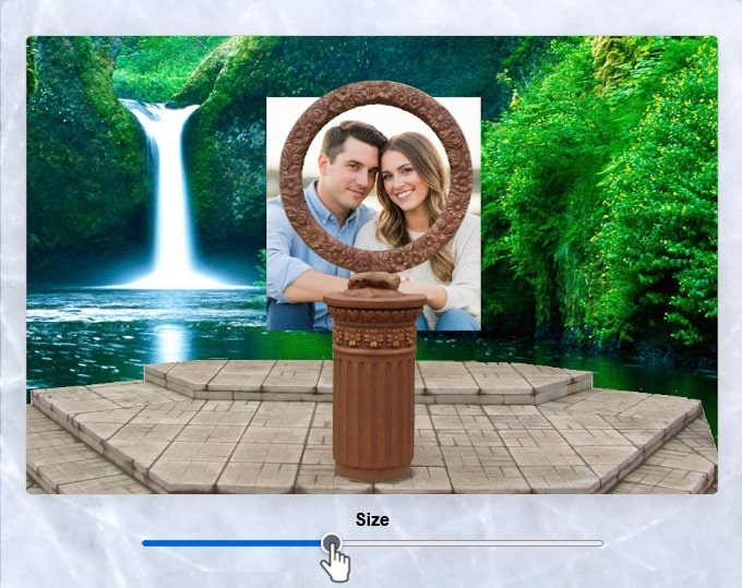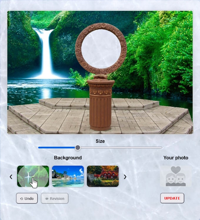 Move images: You can move the picture on the large canvas (template with the "Love Stone" pedestal), drag it to the desired location.