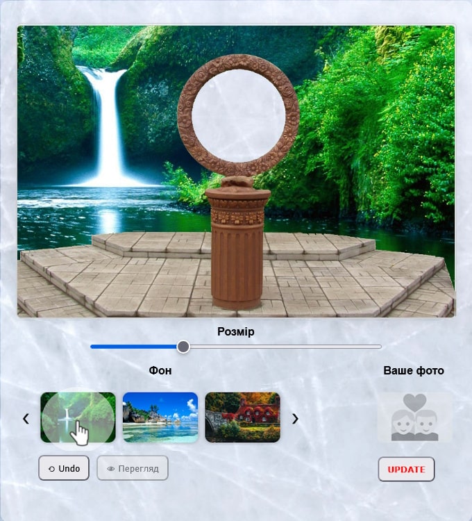 Фото: Праворуч "Ваше фото" Натисніть на нього, щоб завантажити фото закоханих.